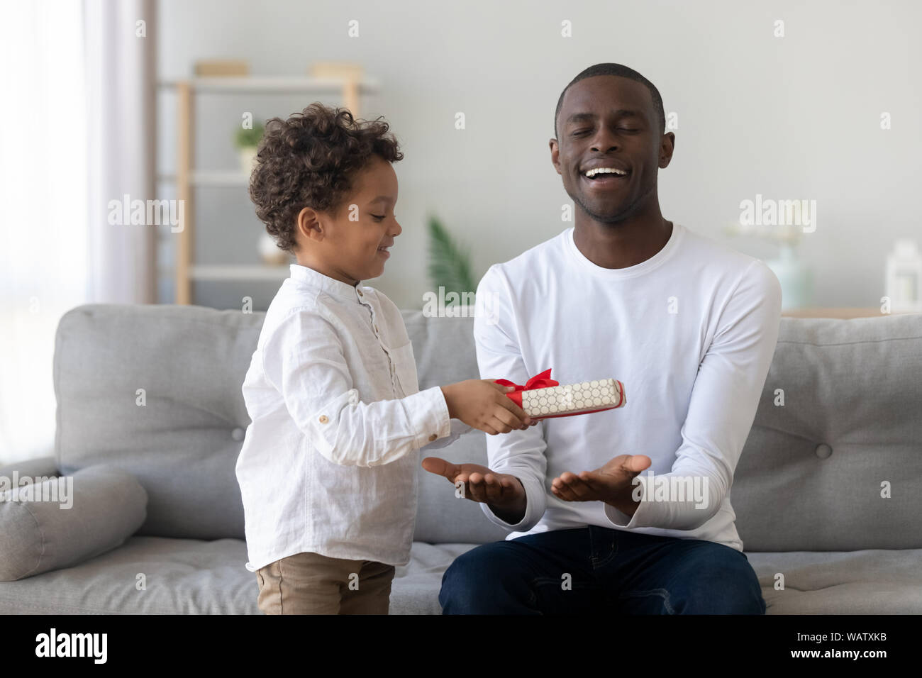 Cute African Kid Son Giving Gift To Dad Fathers Day Stock Photo Gifts For Dad From Toddler Son